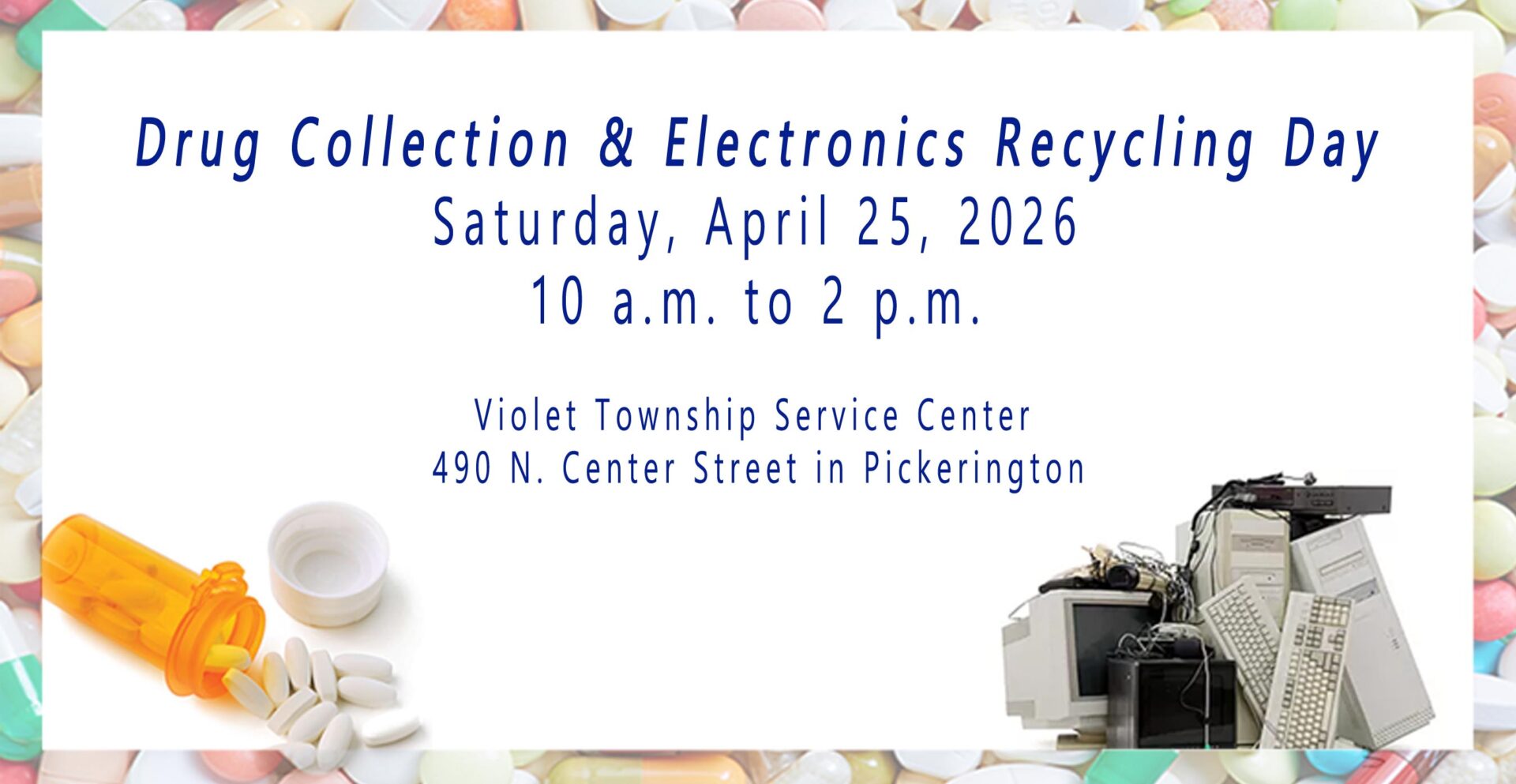 A collection event will be hold on April 25 from 10 a.m. to 2 p.m. at the Violet Township Service Center in Pickerington. Drug Collection & Electronics Recycling Day flyer